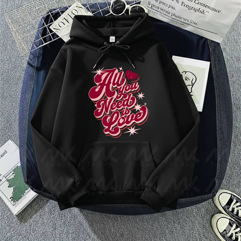 Be the first to review “Capuche avec design All You Need Is Love – Noir”